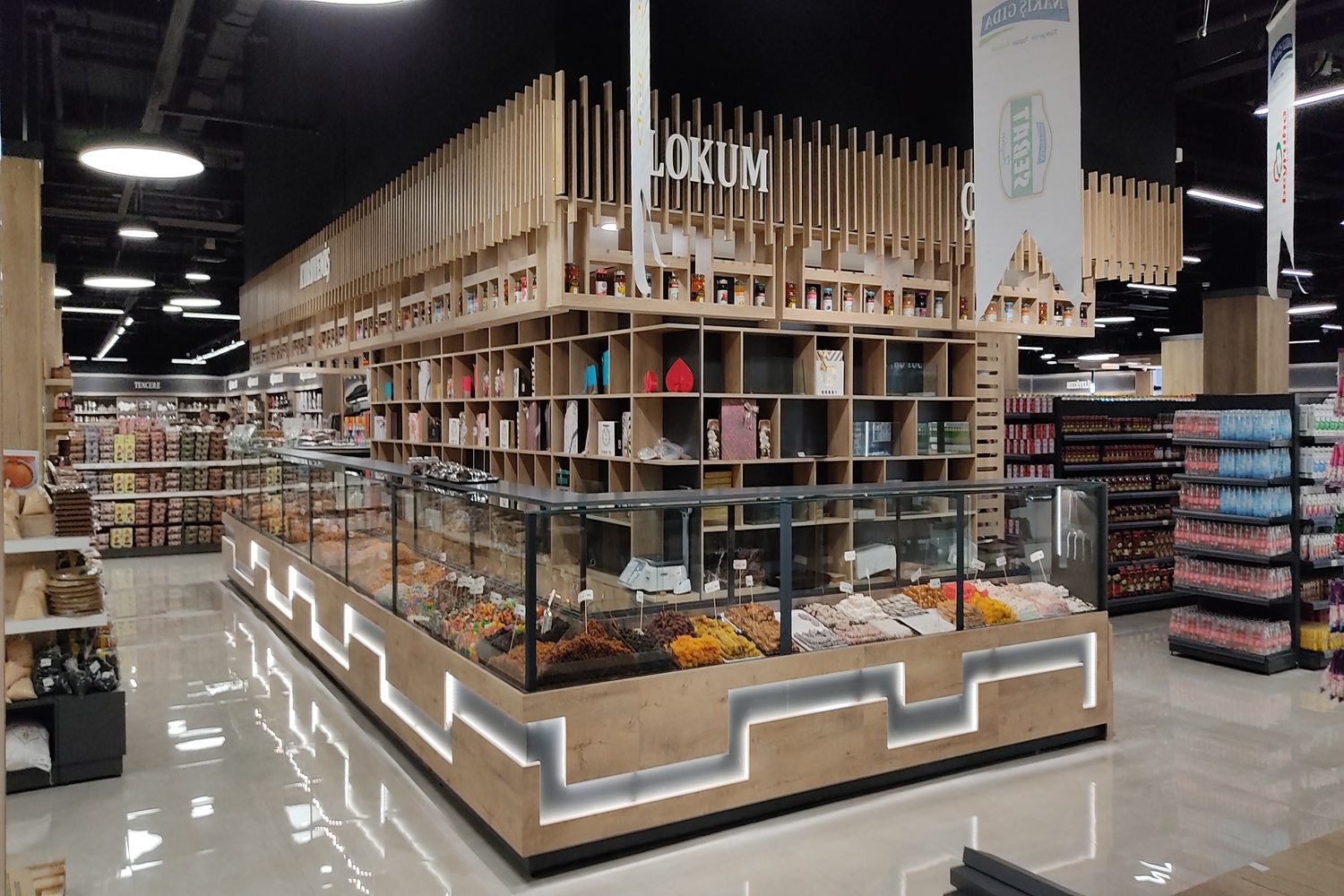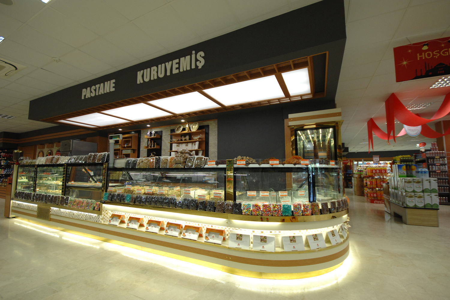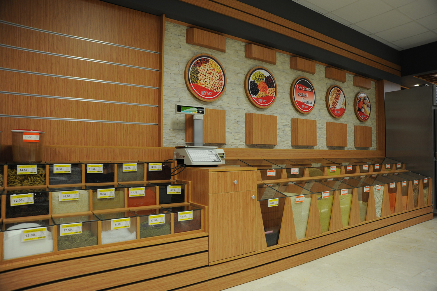Kuruyemiş ve bakliyat ürünlerinin temiz, düzenli ve cazip bir şekilde sunulması için ideal raf sistemleri sağlar. Esnek tasarımıyla ürün çeşitliliğini kolayca sergilemenize olanak tanır.